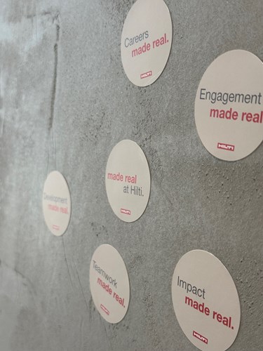 Zusammen zeigen diese drei Säulen, wofür Hilti als Arbeitgeber steht, und machen unsere Unternehmenskultur individuell erlebbar. Made Real bringt auf den Punkt, was passiert, wenn persönlicher Antrieb und Leidenschaft auf eine Kultur treffen, die Verantwortung überträgt, Entwicklung ermöglicht und von echtem Teamgeist geprägt ist. Damit ist unsere EVP weit mehr als nur ein Claim. Sie ist unser gemeinsames Leitbild, das zeigt, wie wir die Vision „Making Construction Better“ Wirklichkeit werden lassen.
